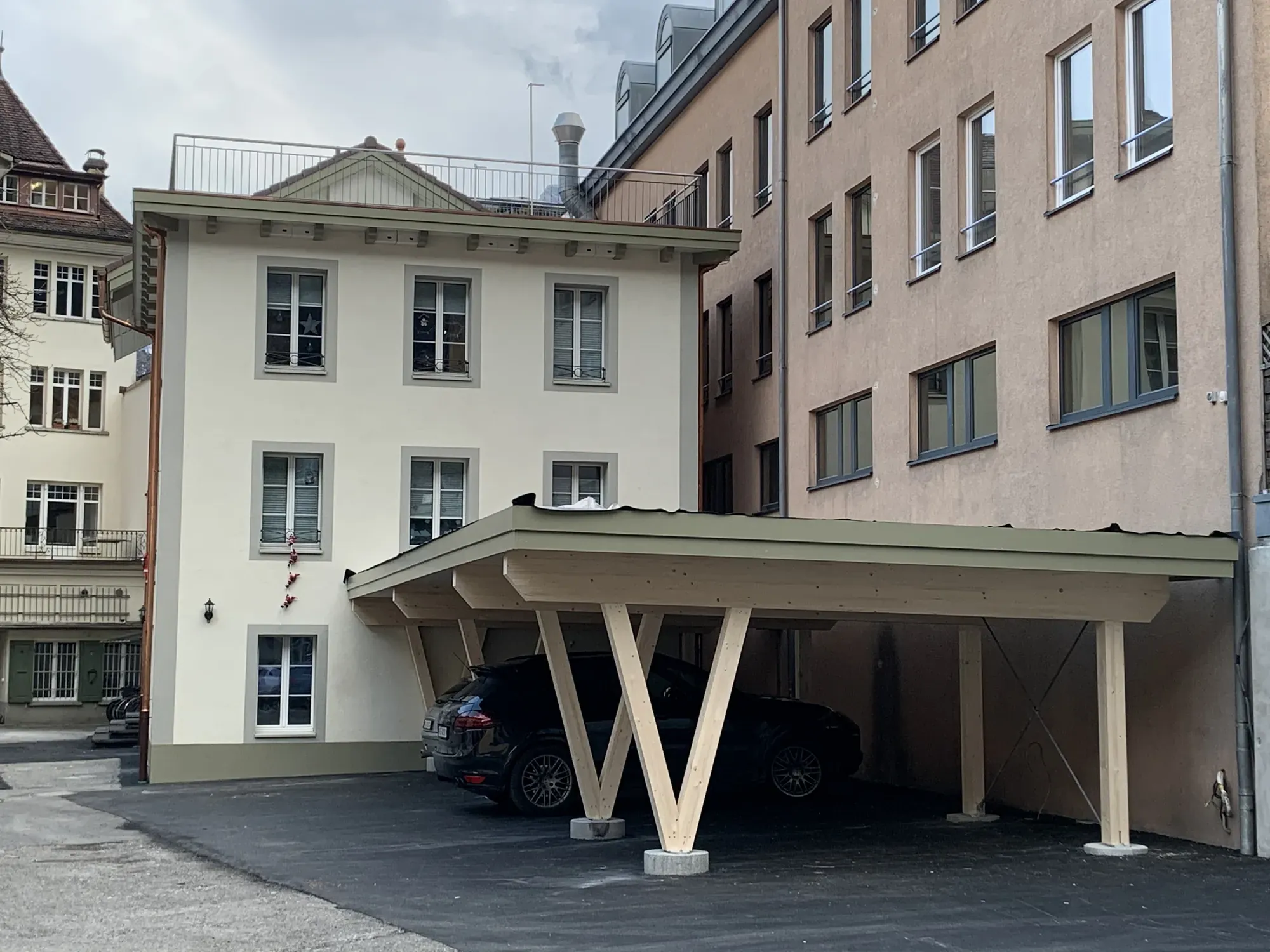 Wir planen und bauen Ihren Carport ganz nach Ihren Wünschen – in Form, Grösse und Design. Dabei verwenden wir nachhaltiges Schweizer Holz und setzen auf robuste, langlebige Dachkonstruktionen. So entsteht ein Carport, der perfekt zu Ihrem Haus passt – funktional, ästhetisch und ökologisch sinnvoll.